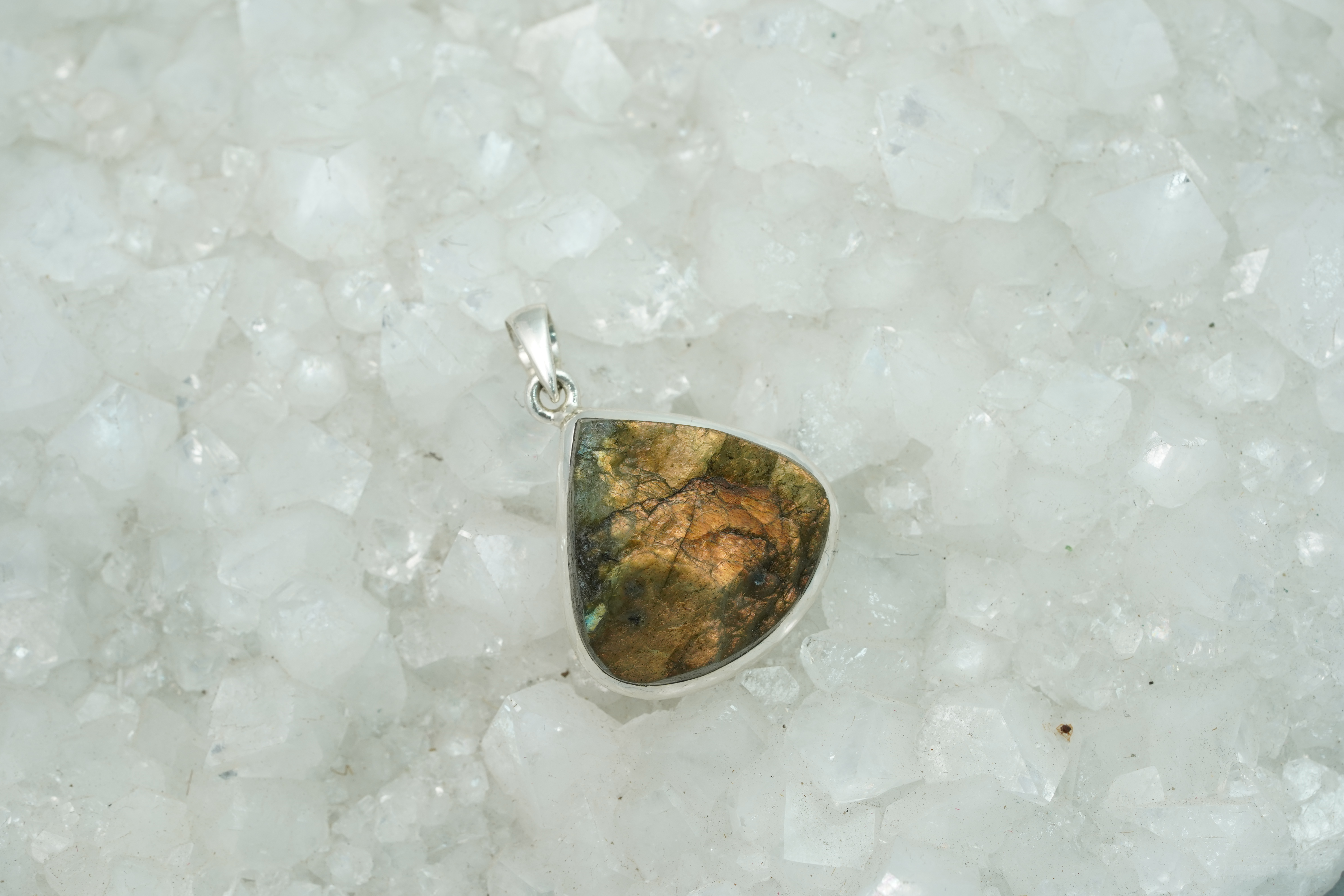 Naturbelassener Labradorit aus Madagaskar mit Farbspiel auf der gesamten Oberfläche.Steine sind gut gefasst und können nicht verloren gehen und so poliert,dass keine scharfen Spitzen und Kanten vorhanden sind.